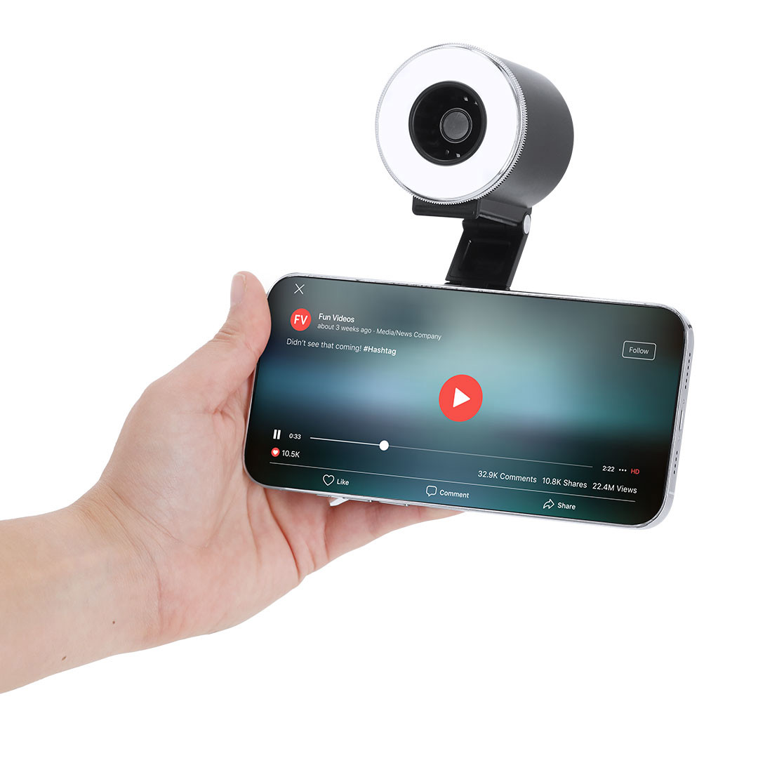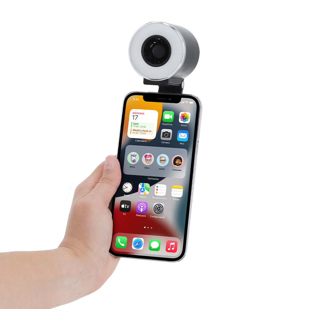 Anel de luz com ventoinha feita de ABS resistente com acabamento mate. Inclui suporte magnético multiposição extensível para smartphone. Ventoinha com 3 velocidades e opção para mudar de velocidade. A luz circular tem 16 LEDs com opção para 3 níveis de intensidade luminosa. Inclui botões de ligar e desligar, controlo de luz e velocidade. Bateria de 500mAh recarregável por cabo de carregamento tipo C incluído, 5V. 3 Poziomy Prędkości. Magnetyczny. Rozsuwany. 16 Diod Led. 3 Poziomy Światła. Bateria 500 mAh