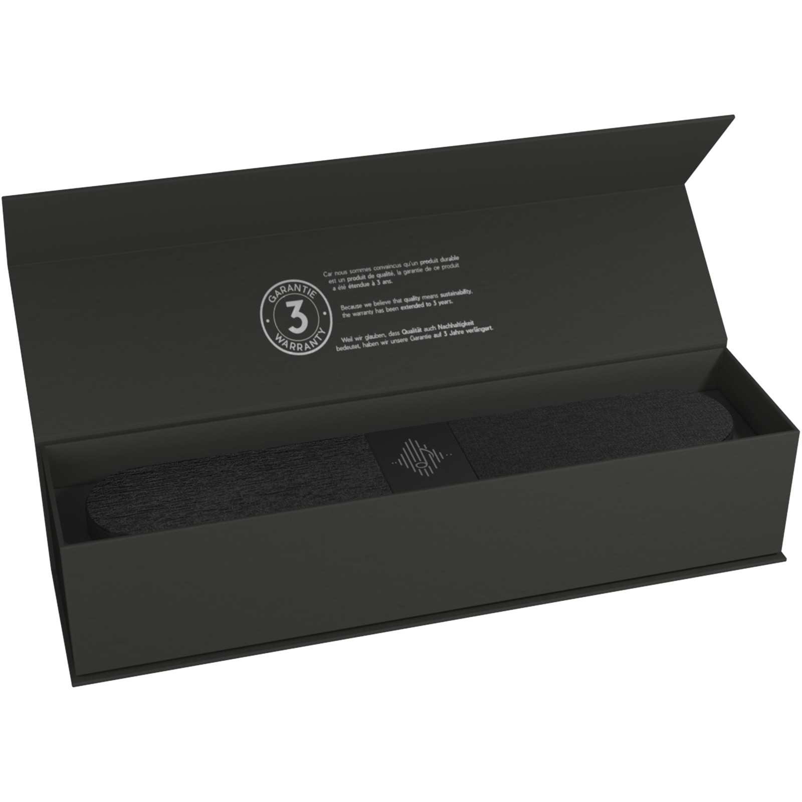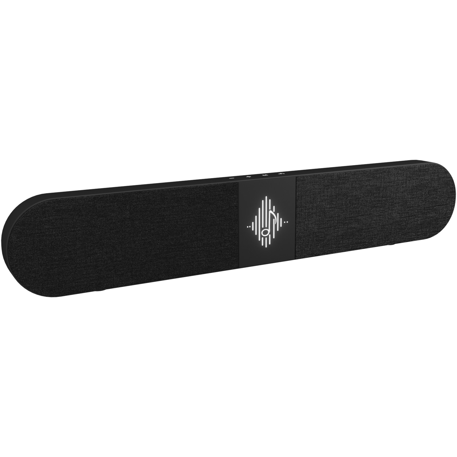 Barra de som com logótipo luminoso com potência 2x10 W e tratamento antibacteriano à superfície. A alta qualidade e potência do som torna-a adequada para uso em sistema de cinema em casa e pode ser conectada via Bluetooth® ou HDMI (cabo HDMI não incluído). Função de microfone integrado para teleconferências. Entregue com um cabo de carregamento feito de RPET. Tamanho da barra de som: 42 x 7,2 x 5,4 cm. Embalada numa caixa de presente (41 x 9,5 x 6,7 cm) com fecho magnético. Inclui 3 anos de garantia.