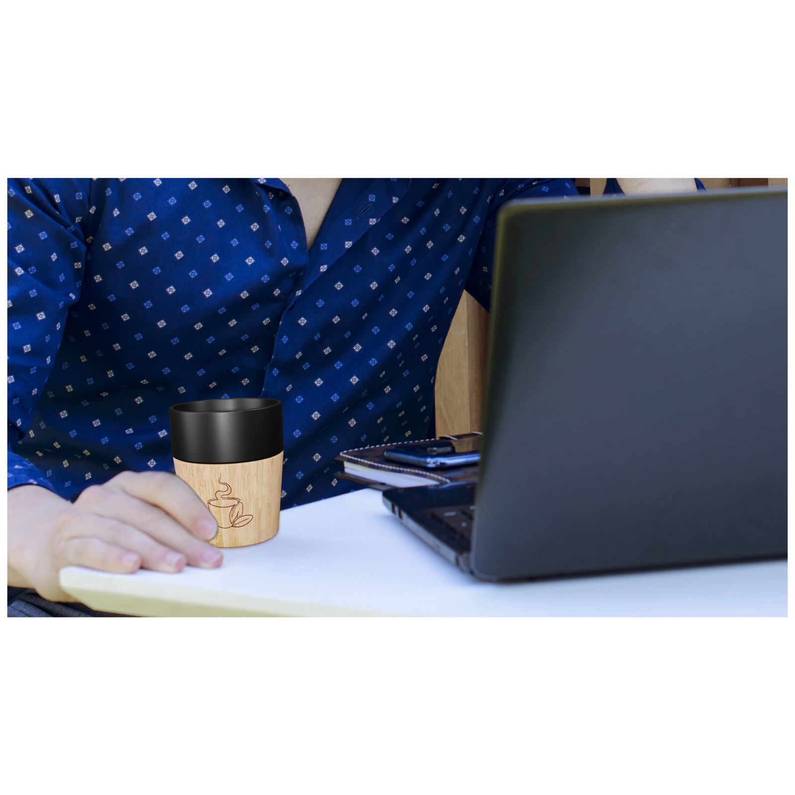 Conjunto de 4 canecas de cerâmica de 150 ml com uma base de madeira magnética, ideal para café expresso curto ou cheio. A tecnologia Smart Magnet permite separar a base de madeira da caneca de cerâmica para facilitar a limpeza. As canecas de cerâmica são compatíveis com a máquina de lavar louça. Fornecido numa caixa de presente de papel kraft reciclado com fecho magnético (34,5 x 12 x 9,5 cm). A gravação laser na base de madeira é uma opção de impressão sustentável .