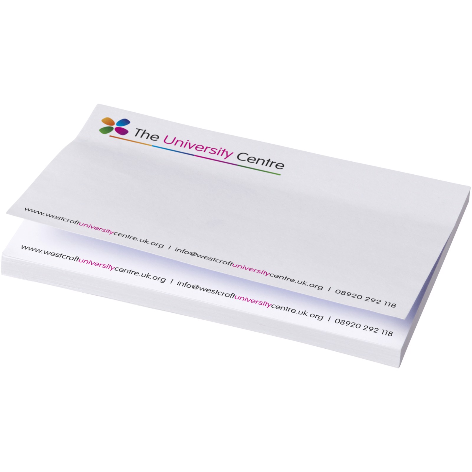 Notas adesivas Sticky-Mate® com papel autoadesivo de 80 g/m2. Impressão full color disponível em cada folha. 3 opções de numero de folhas (25/50/100 folhas).