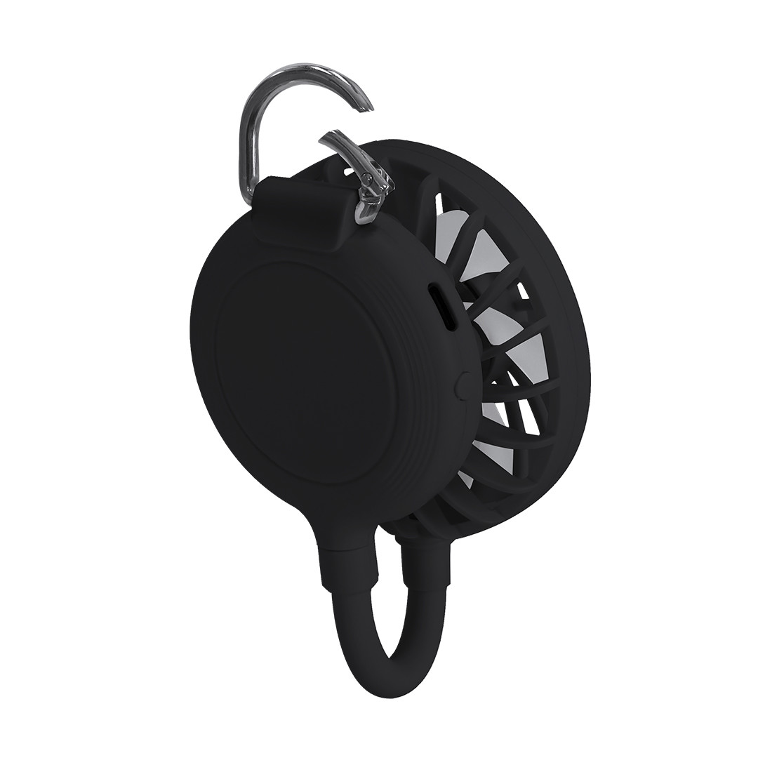 Ventilador multiposição com rotação de 360°, feito de ABS de cor sólida e equipado com ventosa para segurar telemóvel. Inclui suporte ajustável para dispositivos. Na sua extremidade inferior incorpora um mosquetão com um anel metálico. 3 velocidades com ajuste de botão, e inclui cabo de carregamento USB A para USB C da mesma cor com bateria de 300 mAh. O seu design permite que seja ajustado livremente conforme as suas necessidades e adaptado a várias situações, proporcionando uma agradável sensação de frescura em todos os momentos. Ventosa. Bateria 300 mAh